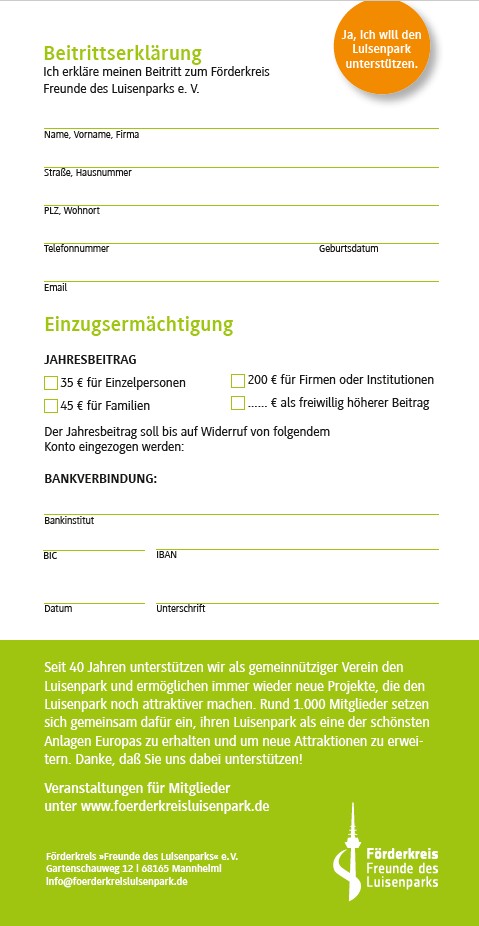 Jedes einzelne Mitglied ist für uns sehr wertvoll und unterstützt mit uns den Luisenpark!